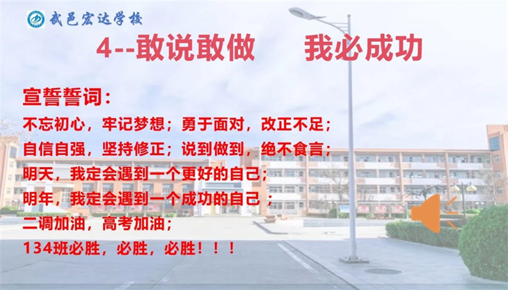 “不(bù)忘初心,牢記夢想;勇于面對(duì),改正不(bù)足;自(zì)信自(zì)強,堅持修正;說(shuō)到(dào)做(zuò)到(dào),絕不(bù)食言;明(míng)天,我定$會(huì)遇到(dào)一(yī)個(gè)更好(hǎo)的(de)自(zì)己;明(míng)年(nián),我定會(huì)≤遇到(dào)一(yī)個(gè)成功的(de)自(zì)己......”班會(huì)課在同學們铿锵的(de)宣誓聲¥中結束。