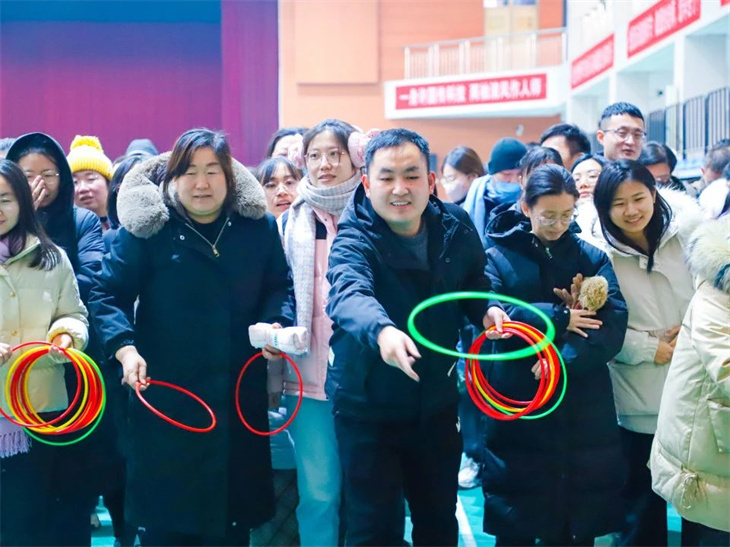 趣味套圈遊戲,激動人(rén)心時(shí)刻。老(lǎo)師(shī)們滿懷激情的(de)心情,摩拳擦掌。投擲時(shí),每一(yī)位老(lǎo)師(™shī)都(dōu)全神貫注,找準角度,各顯身(shēn)手。比賽過程氣氛熱(rè)烈,大(dà)家(j✔iā)相(xiàng)互鼓勵,相(xiàng)互喝(hē)彩,充滿了(le)歡聲笑(xiào)語。