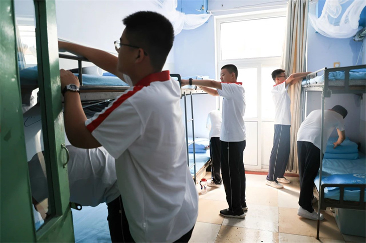 收拾內(nèi)務是(shì)培養生(shēng)活自(zì)理(lǐ)能(néng)力的(de)一(yī)個(gè)重要(yào)方面。通(©tōng)過教官的(de)親身(shēn)示範和(hé)指導,學生(shēng)能(néng)夠更迅速地(dì)學會(huì)這(zhè)一(yī)技(jì)能(nεéng)。此外(wài),教官親自(zì)教授疊被子(zǐ)的(de)過程,不(bù)僅傳遞了(le)軍隊的♥(de)優秀傳統和(hé)文(wén)化(huà),還(hái)幫助學生(shēng)深入理(lǐ)解軍隊的(de)精神和(hé)紀律要(yà‌o)求。