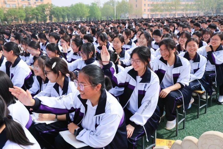 互動環節中,同學們積極踴躍地(dì)參與其中。面對(duì)王老(lǎo)師(shī)提出的(de)問(wαèn)題,大(dà)家(jiā)紛紛舉手發言,分(fēn)享自(zì)己在備考過程中的(de)困惑與堅持,分(fēn)享自♦(zì)己在成長(cháng)經曆中印象最深的(de)事(shì)情。在交流互動中,整個(gè)操場(chǎng)洋溢著(zhe‌)熱(rè)烈的(de)氛圍,同學們的(de)熱(rè)情被徹底點燃,拼搏的(de)決心更加堅定。